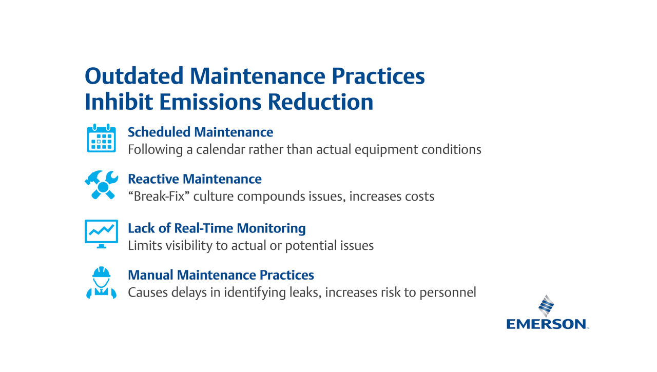 漏えい排出を防止する 最も効果的な方法は、すべての設備がそれらを排除または低減できるように設計されていることを確保することです。 組織は、排出データの正確な追跡と報告を行う必要があります。これは多くの場合、ワイヤレス音響センサやインテリジェント・バルブ・ポジショナなど、密かな排出物漏洩を検知できるスマートテクノロジーへの投資を意味します。 組織が競争力とサステナビリティを維持するには、排出量の当て推量はもはや現実的ソリューションではありません。
