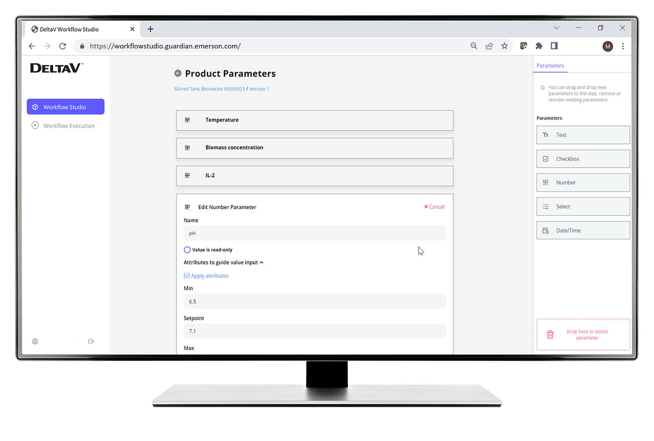 セントルイス (2024 年 4 月 16 日)– オートメーションテクノロジーおよびソフトウェアの分野でグローバルリーダーの地位を築いている Emerson(NYSE: EMR)は本日、初期開発段階のライフサイエンス企業向けに設計された次世代ソフトウェア、 DeltaV™ ワークフロー管理を発表しました。 この新しいソフトウェアは、エマソンが進化する DeltaV オートメーションプラットフォームの機能を今後も拡大し続けることに貢献し、小規模なライフサイエンスイノベータのニーズに合わせて拡張性に優れたオプションを提供します。 IT インフラストラクチャが限られている企業の場合、DeltaV ワークフロー管理は、シンプルなレシピ作成、実行、電子データキャプチャ用のクラウドベース SaaS ソリューションを提供します。