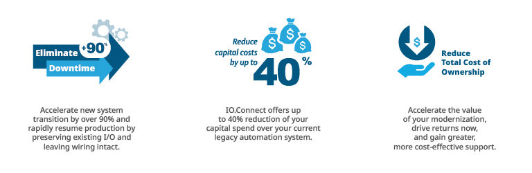 DeltaV™ IO.Connect を使用することで、プラントは旧式の制御システムを DeltaV DCS にアップグレードすると同時に、ダウンタイムやリスクを最小限に抑えることができます。